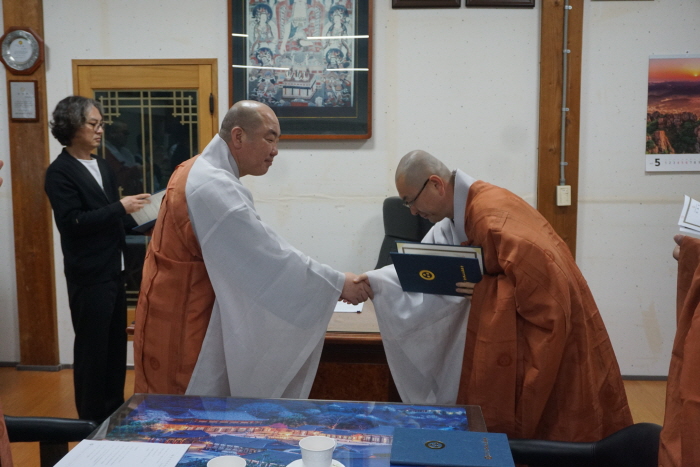 지리산대화엄사 교구장이신 우석스님께서 임명장을 수여 하였습니다.