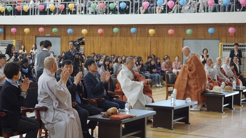 5월 7일 광주 정광중,정광고등학교에서는 정광학원 신임 이사장 덕문스님 이하 화엄사 사부대중, 정광중,정광고등학교 학생들이 모여 부처님 오신 날 봉축법요식 행사를 원만하고 축제의 분위기 속에서 봉행되었습니다.